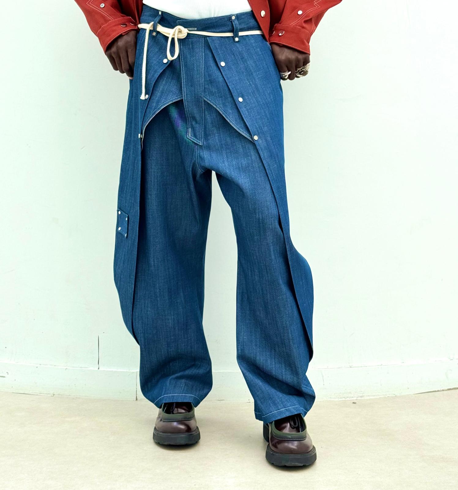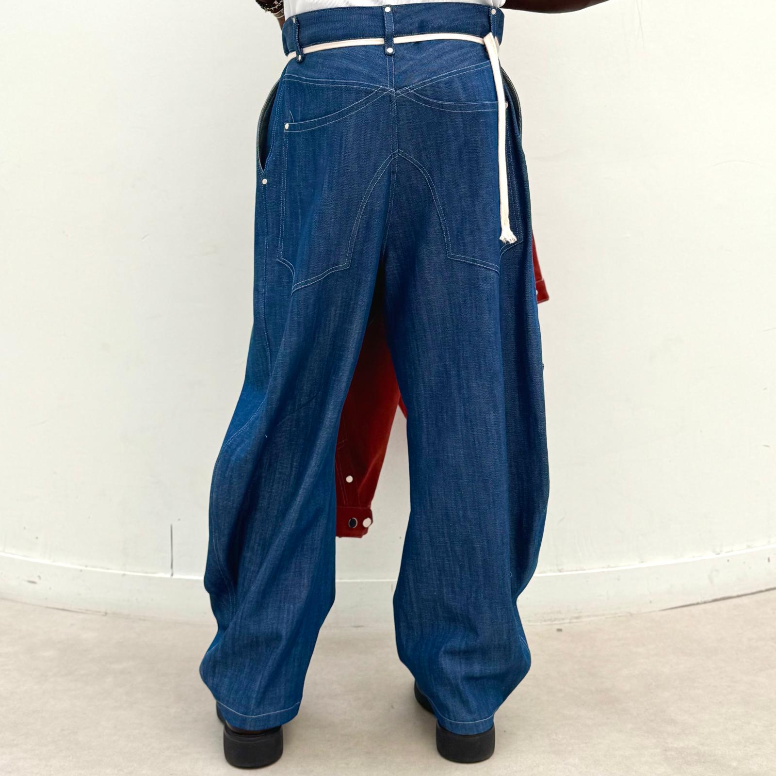 Pantalon denim 100% coton, couleur bleu.