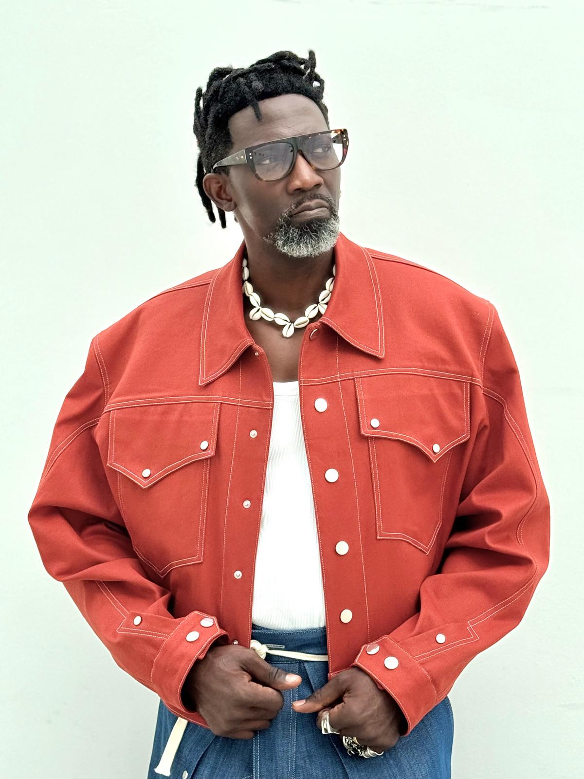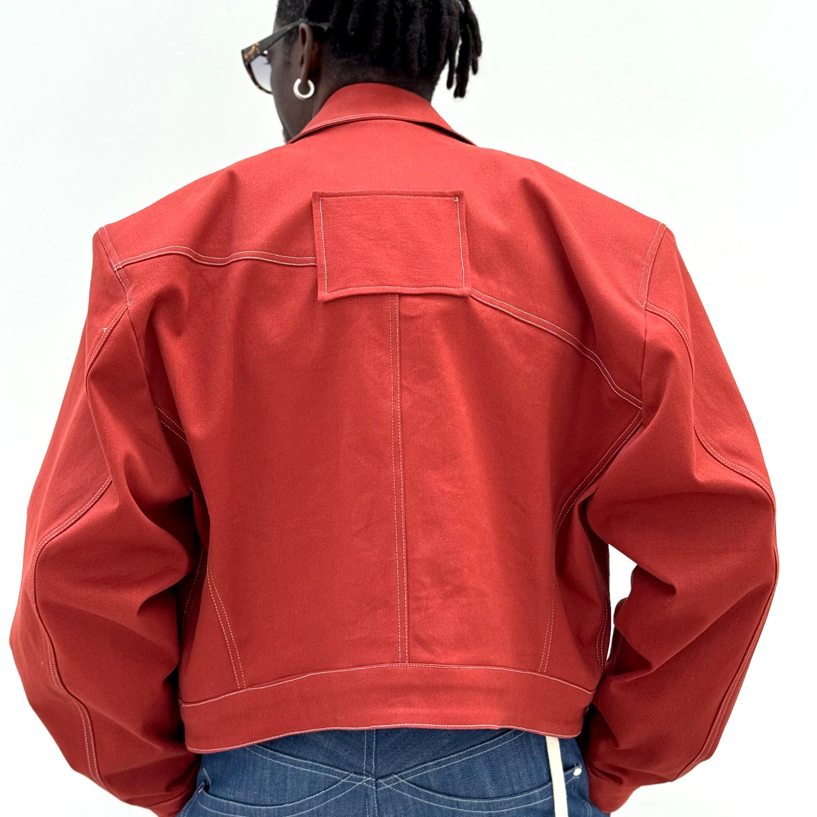 Veste en denim 100%coton, couleur terracotta.